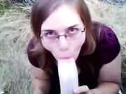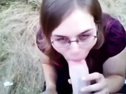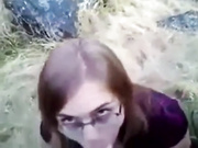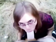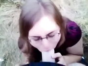 Nerdy chick sucking cock outdoor