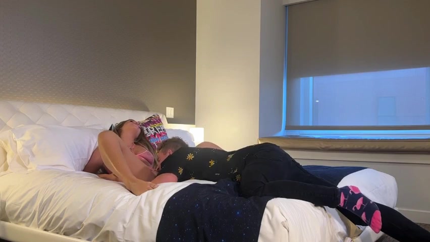 A hot and horny babe brings home a lucky guy to have a wonderful night of sex.