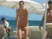 Beach candid hotties exposed by hidden camera while walking topless or nude on sunny warm sands, revealing nice tits and appetizing pussy.