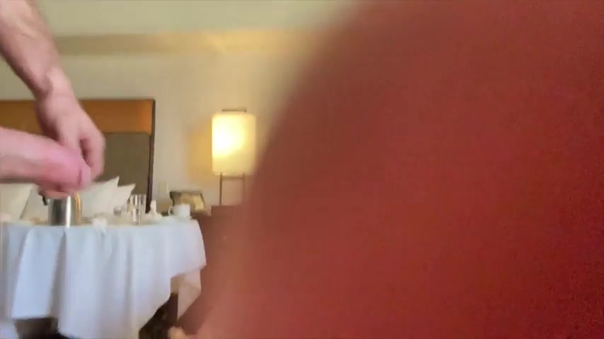 Horny couple fucking while on vacation in their hotel room.