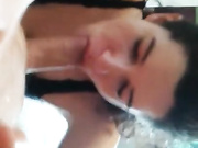 Amateur girlfriend rubs boyfriend cock. He records her POV style while she blows him and gives a good deepthroat.