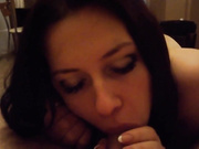 Superb brunette girlfriend takes her BF's cock into her mouth. The way she blows him it's just awesome.