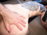 A horny inked MILF fucks her boyfriend.
