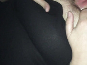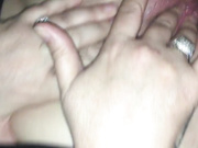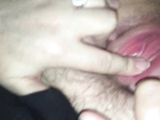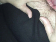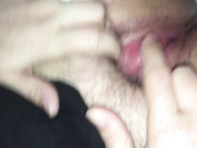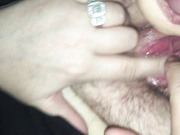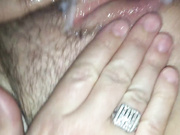 Husband cumming on wife hairy pussy