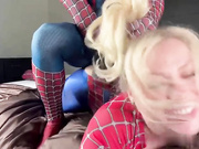 A BBC and her blonde MILF lover in cosplay and fucking in their bed.