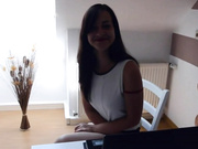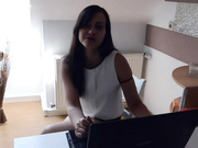 Busty brunette German girlfriend wearing her sexy pantyhose brings pleasure to her guy. She bends her over against the desk and fucks her wet shaved pussy. Her big tits with pierced nipples bounce every time he penetr...