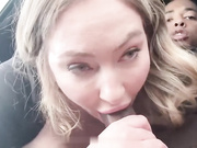 A blonde big ass babe fucks a black guy inside his car.