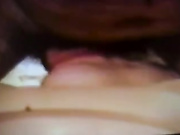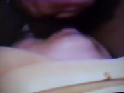 BBW slutty wife having her mouth filled by big black cock and husband's prick, eats cum and takes facial and gets sticky all over her breasts, mouth and lips in homemade sextape.