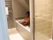 Description: A busty girlfriend gives a footjob then fucked in bathroom to bed.