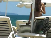 Hidden camera exposing beautiful topless girls on beach, enjoying the sun and tanning their perky tits. And there are voyeurs with their cams taping them.