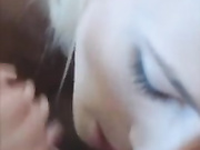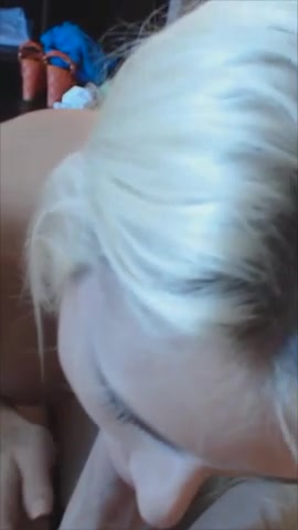 Blonde makes him cum with a blowjob