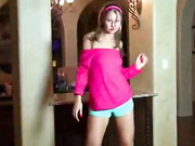 Beautiful blonde teen dancing in front of the camera alluring us in her mood. Her small tits are exposed and they are so perky,