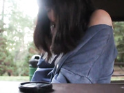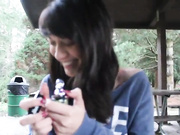 Horny Asian exchange student getting naughty at the summer camp, flasing her pussy and masturbating in public after loosing a bet. Her colleagues should be very happy to see her like this.