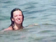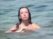 Hidden camera expose nudist wife with big tits and nice curves exposed on voyeur beach while she exits from the water just like a mermaid.