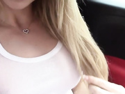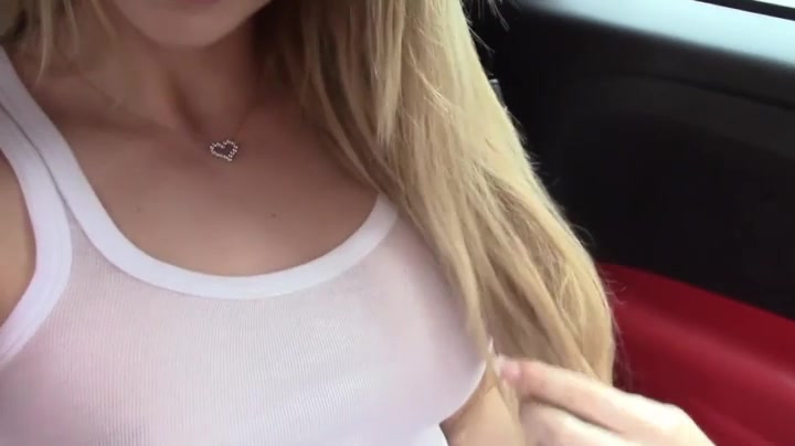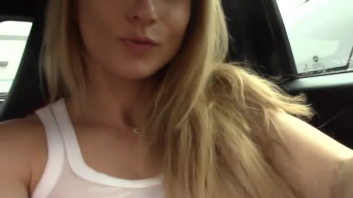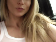 See this blonde hottie rubbing and toying her shaved cunt inside of her car