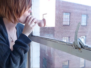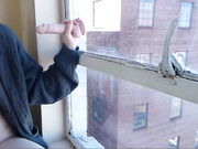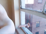 See this hot redhead teen beside the window masturbates with her toys