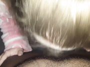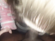 Homemade POV clip with a girl blowing a BBC. She gets a nasty cumshot on her big tits.