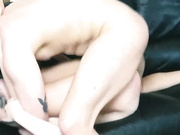 Slutty blonde teen gets her body and pussy degraded by older fat guy on a sofa