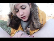 Blonde teen in outdoor blowjob