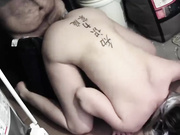 Young kinky BDSM slut gagged and tied up gets her pussy fucked rough till creampie