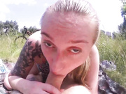 Young big tits teen orgasms from pussy licking outdoors and rides cock till facial