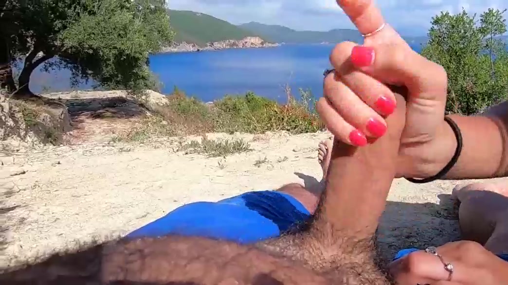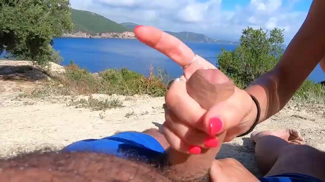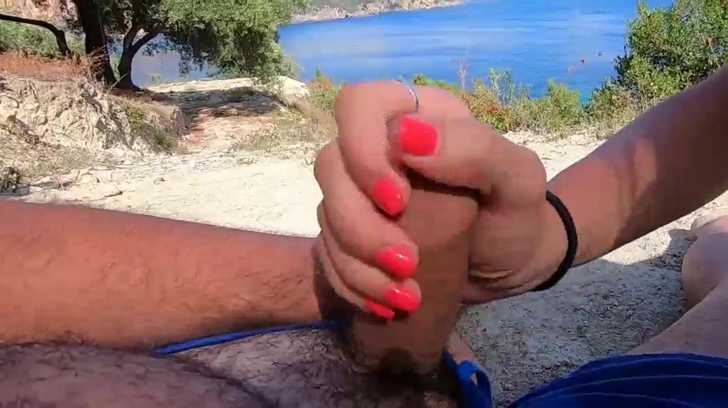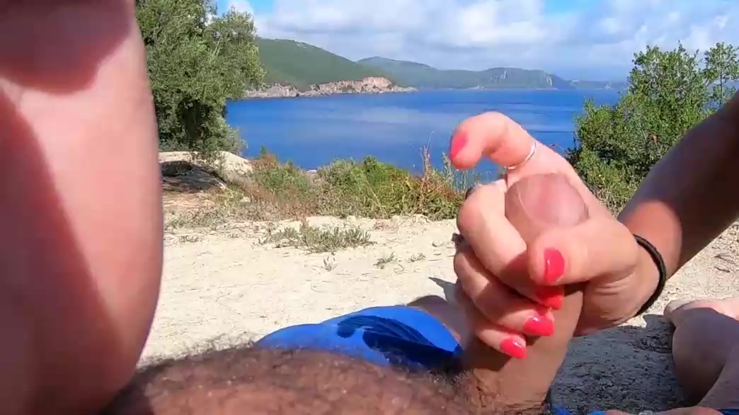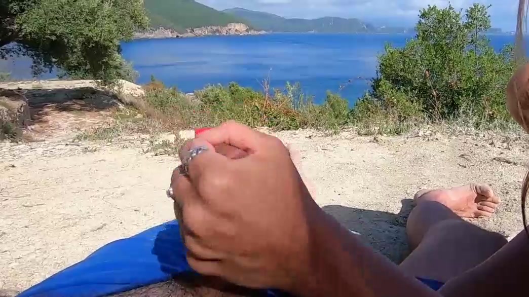 Skinny Girlfriend Gives Me Handjob Outdoors On Beach