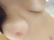 Hot teen films her self getting undressed in public toilet exposing her big natural tits and masturbating her wet shaved pussy.