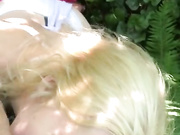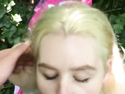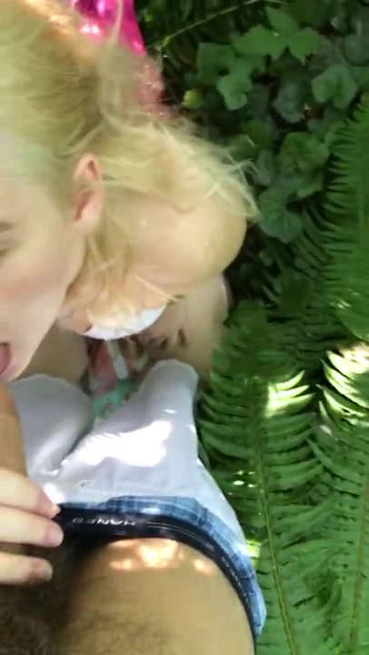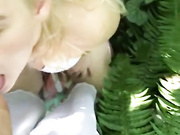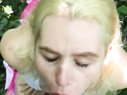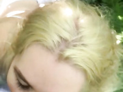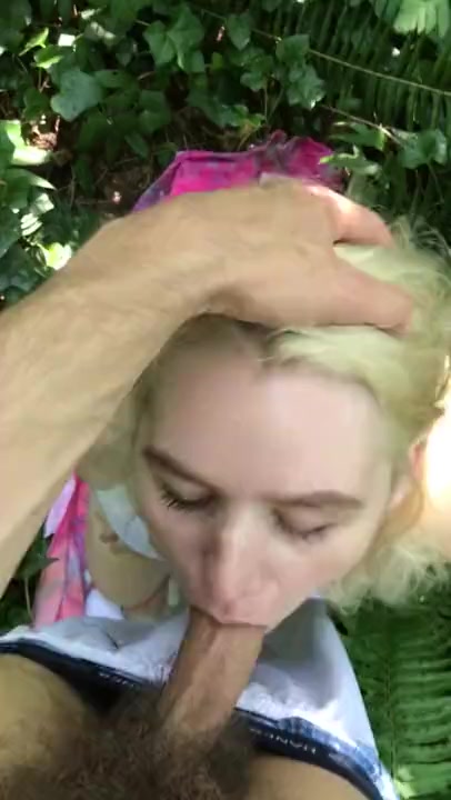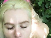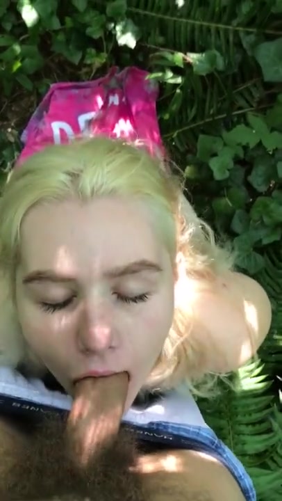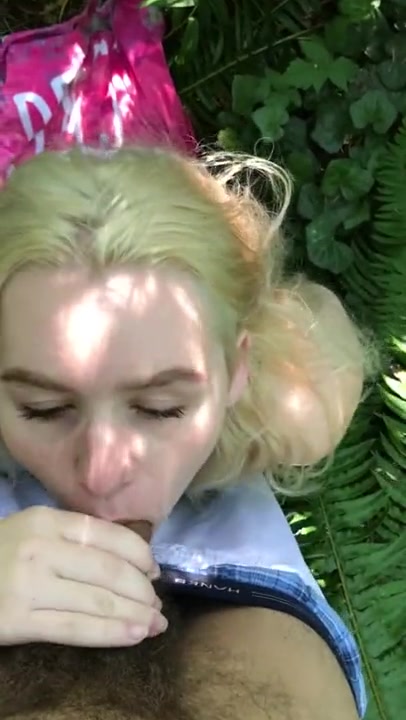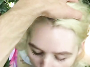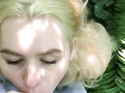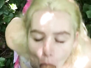 Blonde Chick Gives Good Deepthroat Blowjob In The Woods
