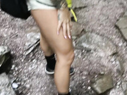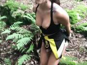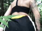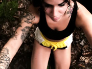 Sexy brunette teen on her knees in forest sucks and takes dick doggystyle till cum swallow