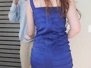 Description: A busty office lady is too horny for sex and gets a hot jizz on her ass