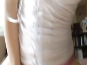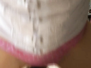 Gorgeous brunette girlfriend with glasses and flower in her hear gives a head to her guy. She then pull her panties one side and starts riding that cock until it cumshots on her big tits.
