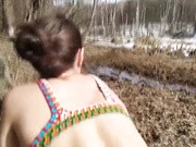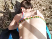 Description: Horny babe brings her man in the woods to fuck and suck his hard cock