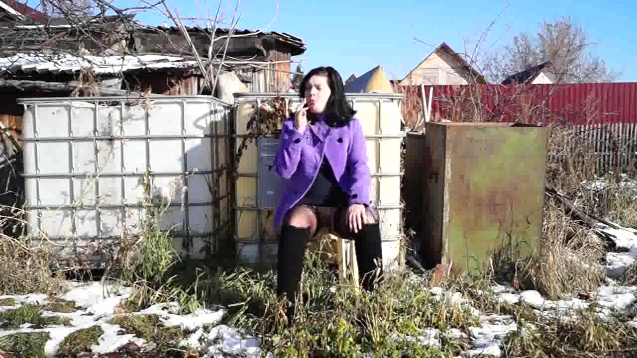 Brunette kinky babe is smoking outdoor, wearing no panties and using her favorite dildo inserted in her pussy. Filed under Outdoor and centered on pissing, outdoor fetish and smoking chick, it leads naturally into the screenshots, details and related videos below.
