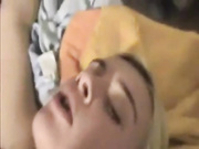 Blonde gal first blows his cocl for a little bit of lubrification before stick it into her tight ass and before leting him cum on her.