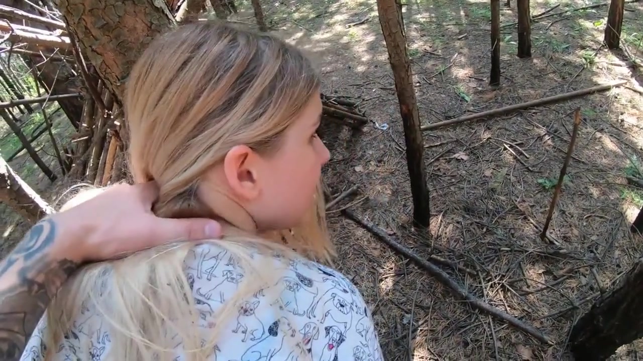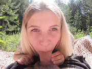Blonde teen sucks and fucks in the woods