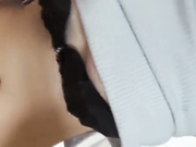 Japanese teen with hairy pussy fucked and creampied by a masked guy