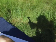 Hot banging action in a grassy field with interracial couple